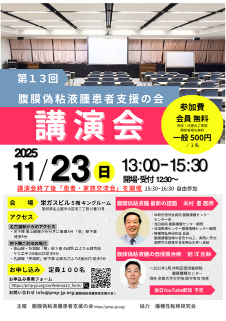 第13回 腹膜偽粘液腫患者支援の会 講演会 ポスター